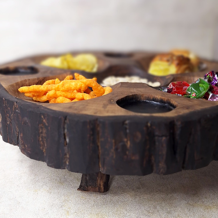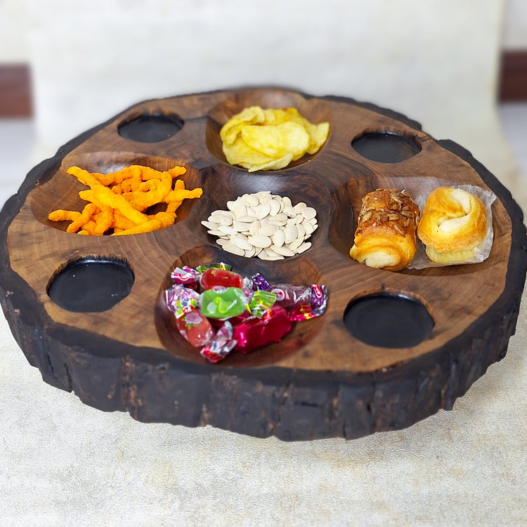 این مزه خوری زیبا از چوب خشک و با کیفیت گردو با ابعاد ۵×۴۰×۳۶ سانت تهیه شده و دارای ۳ عدد پایه کوتاه طبیعی از شاخه درخت گردو هستش و گارانتی بی قید و شرط دو ساله داره