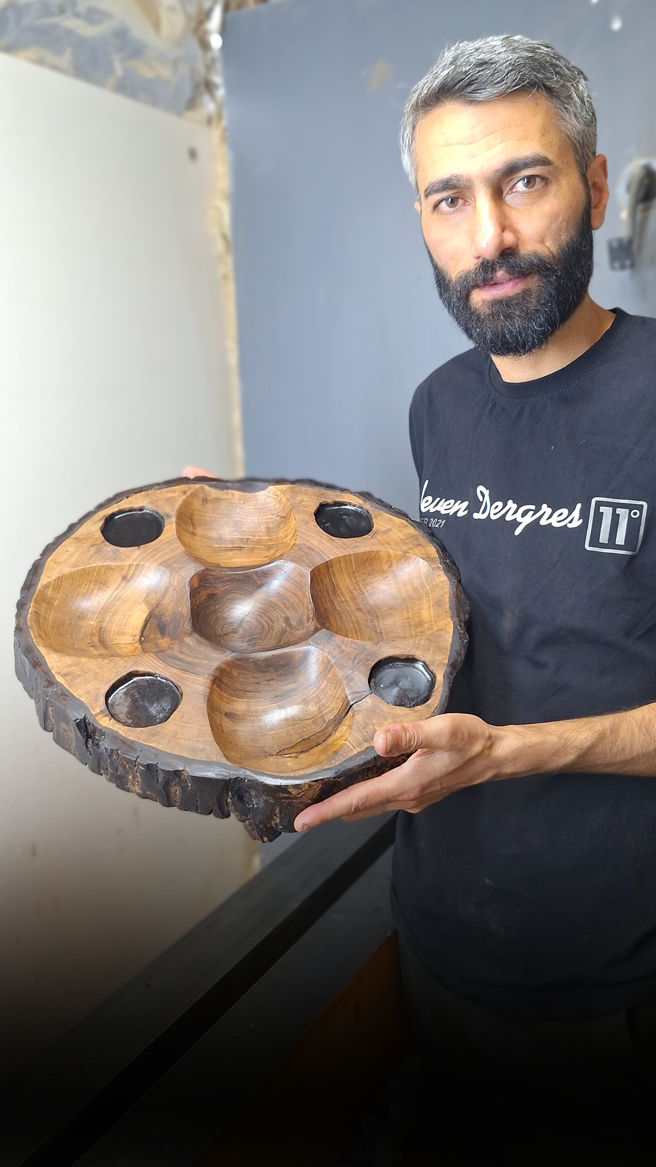 این مزه خوری زیبا از چوب خشک و با کیفیت گردو با ابعاد ۵×۴۰×۳۶ سانت تهیه شده و دارای ۳ عدد پایه کوتاه طبیعی از شاخه درخت گردو هستش و گارانتی بی قید و شرط دو ساله داره